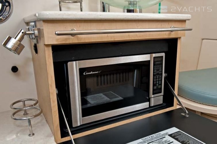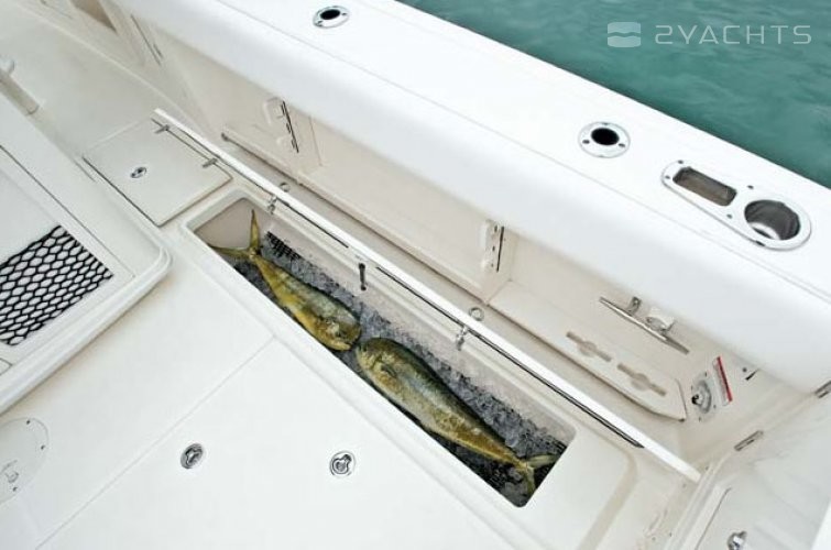 Other: There's no shortage of reasons why Boston Whaler's impressive 370 Outrage earned a coveted NMMA Innovation Award and was named European Powerboat of the Year. Outstanding as both an offshore fishing boat and an entertaining vessel, and exceptional as a yacht tender, the 370 is big on space, comfort and luxury. The devoted angler will appreciate the multipurpose leaning post, with a pressurized livewell, tackle storage, refrigerator/freezer, sink and grill. An optional Summer Kitchen swaps the livewell for another fridge and an electric single-burner stove. The helmet impresses with an electrically adjustable captain's seat and hardtop-windshield system, as well as available Mercury Joystick Piloting, for ultimate confidence when cruising even the roughest ocean waves. The 370 Outrage's spacious cabin hosts a double berth, HDTV, coffeemaker, hanging locker, fridge, microwave, shower and vanity. In other words, everything you need for recreation, entertaining or overnighting in complete comfort.